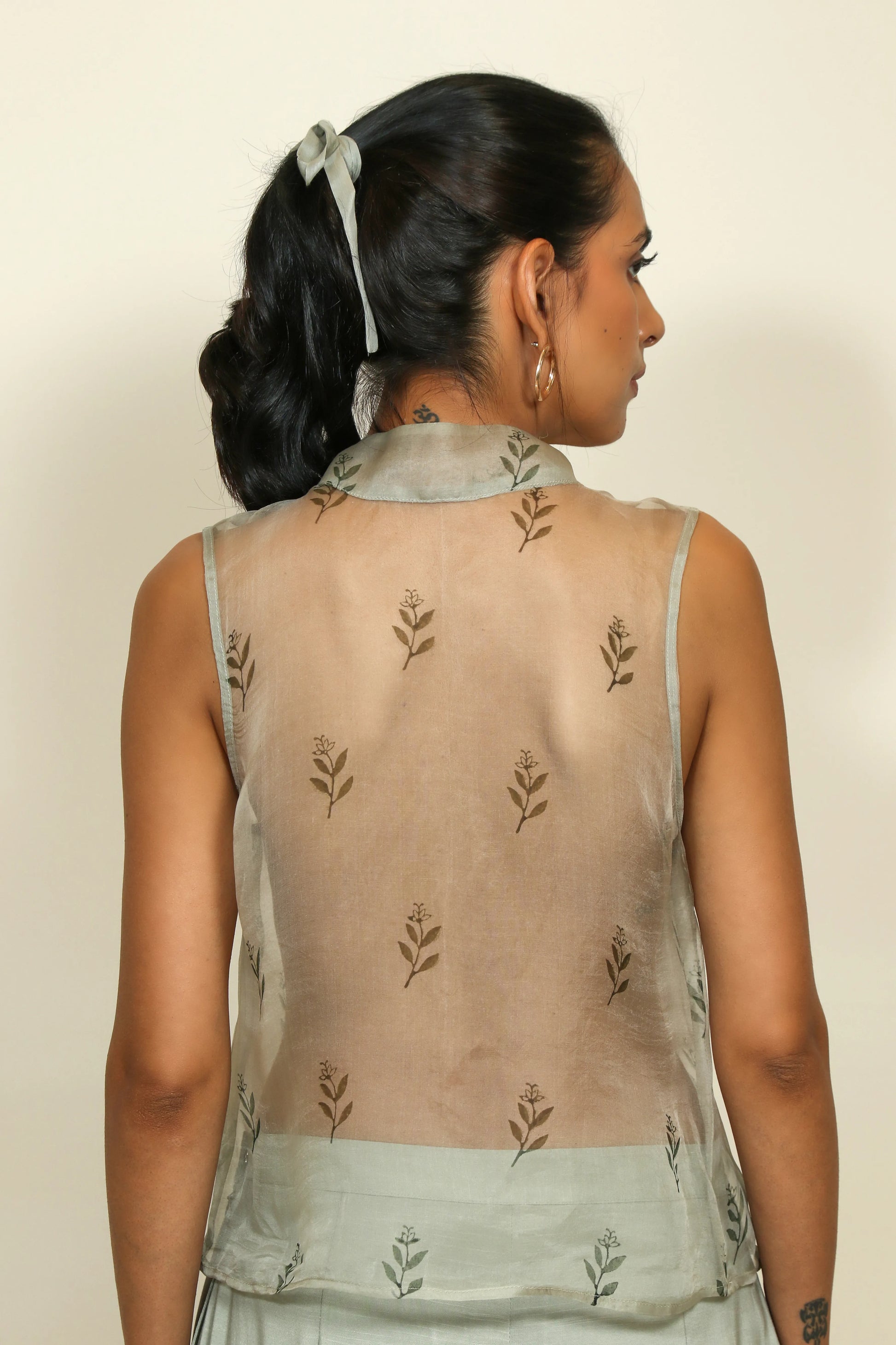 Organza shirt hand block printed.